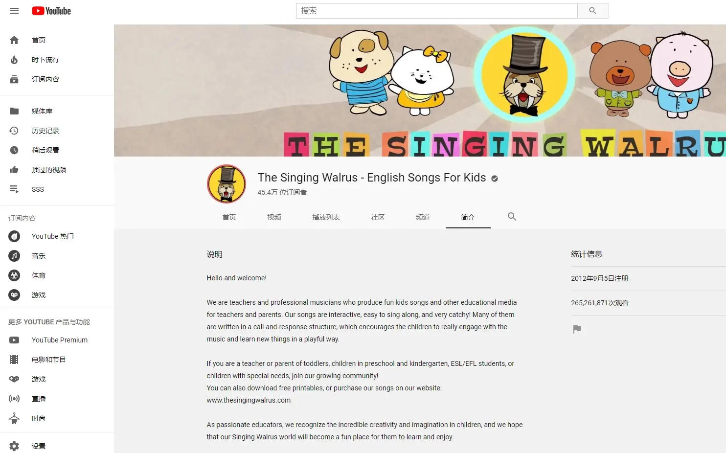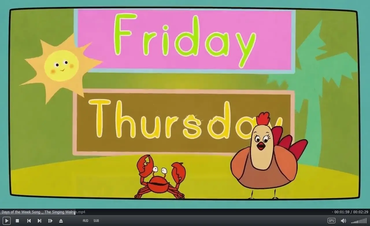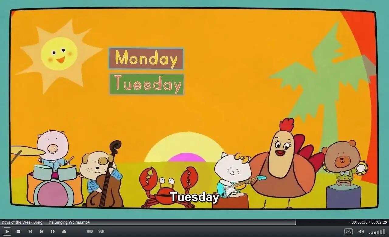 The Singing Walrus是很简单基础的英文儿歌,包括颜色、数字、天气、水果等认知动画,画面简单色彩搭配和谐。特色是还包含学习如何书写26个英文字母的视频。